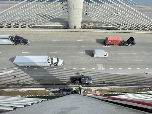 In addition to continuous monitoring, BDI conducted operational testing at project start, after Year 1, and after Year 2. These tests included live load testing of both northbound and southbound lanes, as well as vibration testing of the instrumented stay cables.